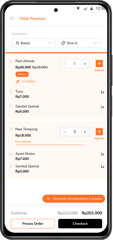 The "Proses Order" button allows staff to open an open bill for a customer—perfect for cases like dine-in orders. (More on that in the Order Management module)