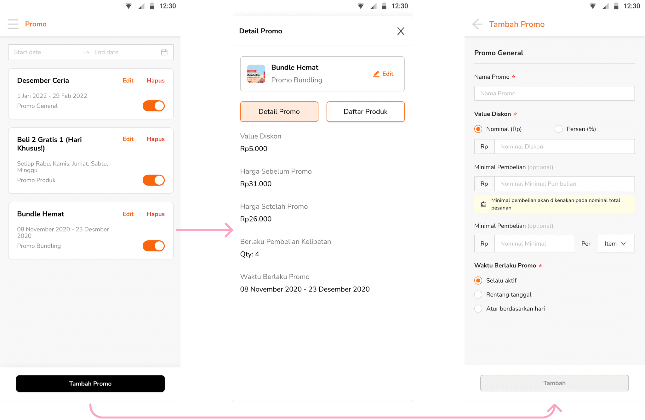 Managing promos should be easy, not a source of errors. I designed this flow so users can apply discounts confidently and avoid mistakes that could affect revenue or customer trust.