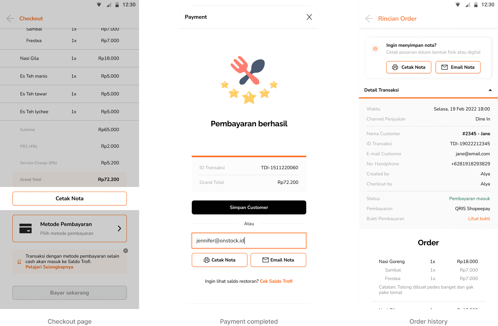 If users are in a rush and don’t have time to print immediately, they can always print the invoice later through the order history in the “Order” feature, since every transaction is recorded there.