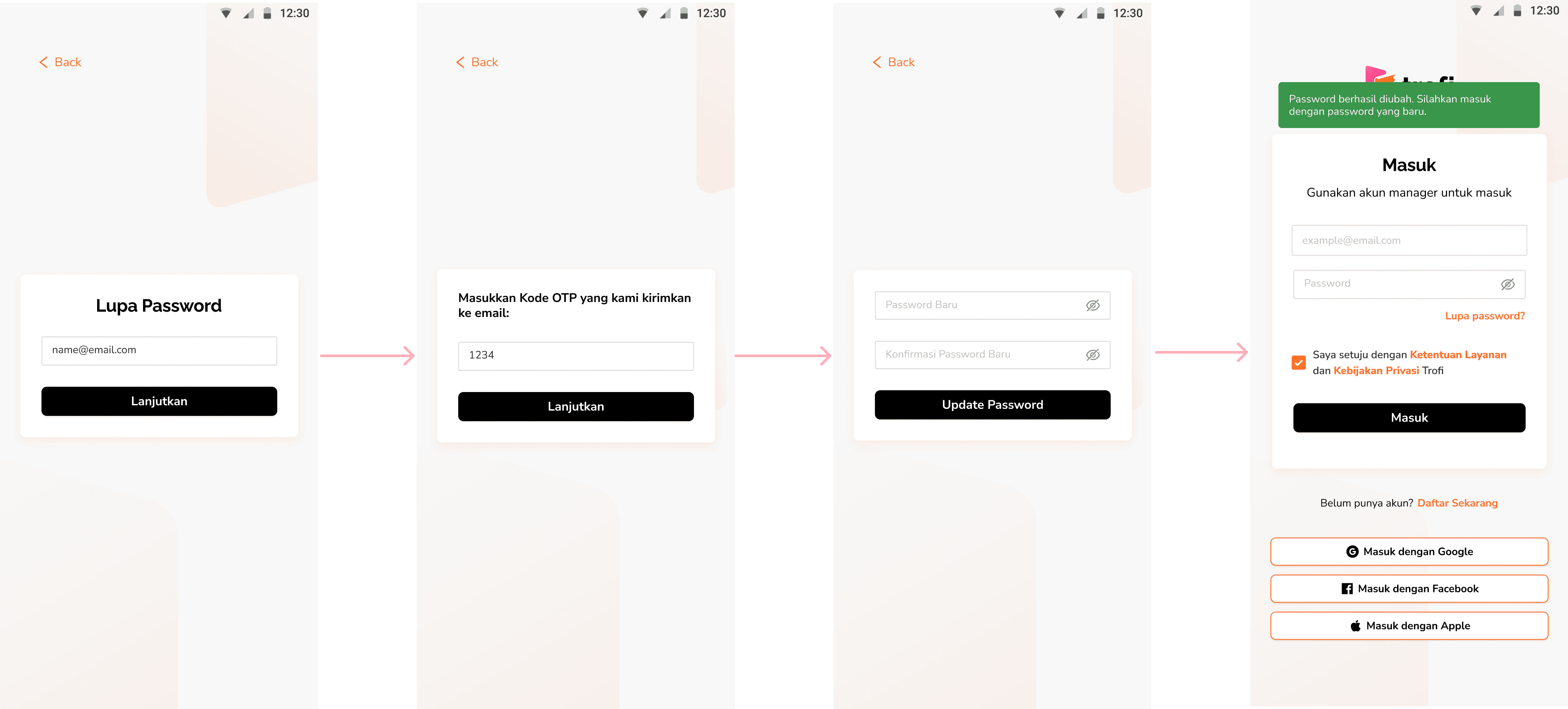 Sometimes credentials are forgotten or need to be reset. To prevent unnecessary friction, Trofi provides straightforward recovery flows that guide users step by step. Each case is designed to be secure but also reassuring, making it clear what’s happening and what to do next.