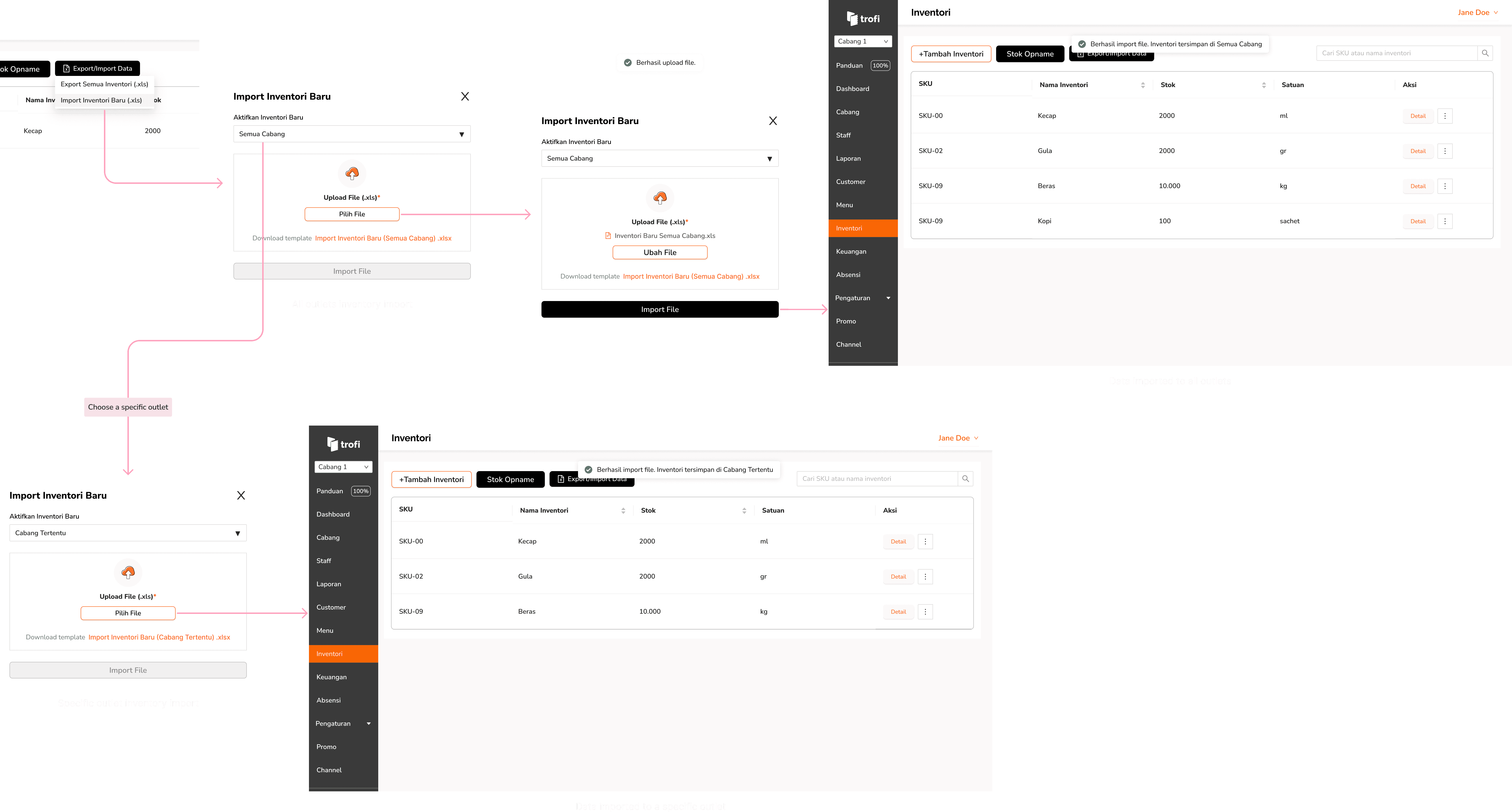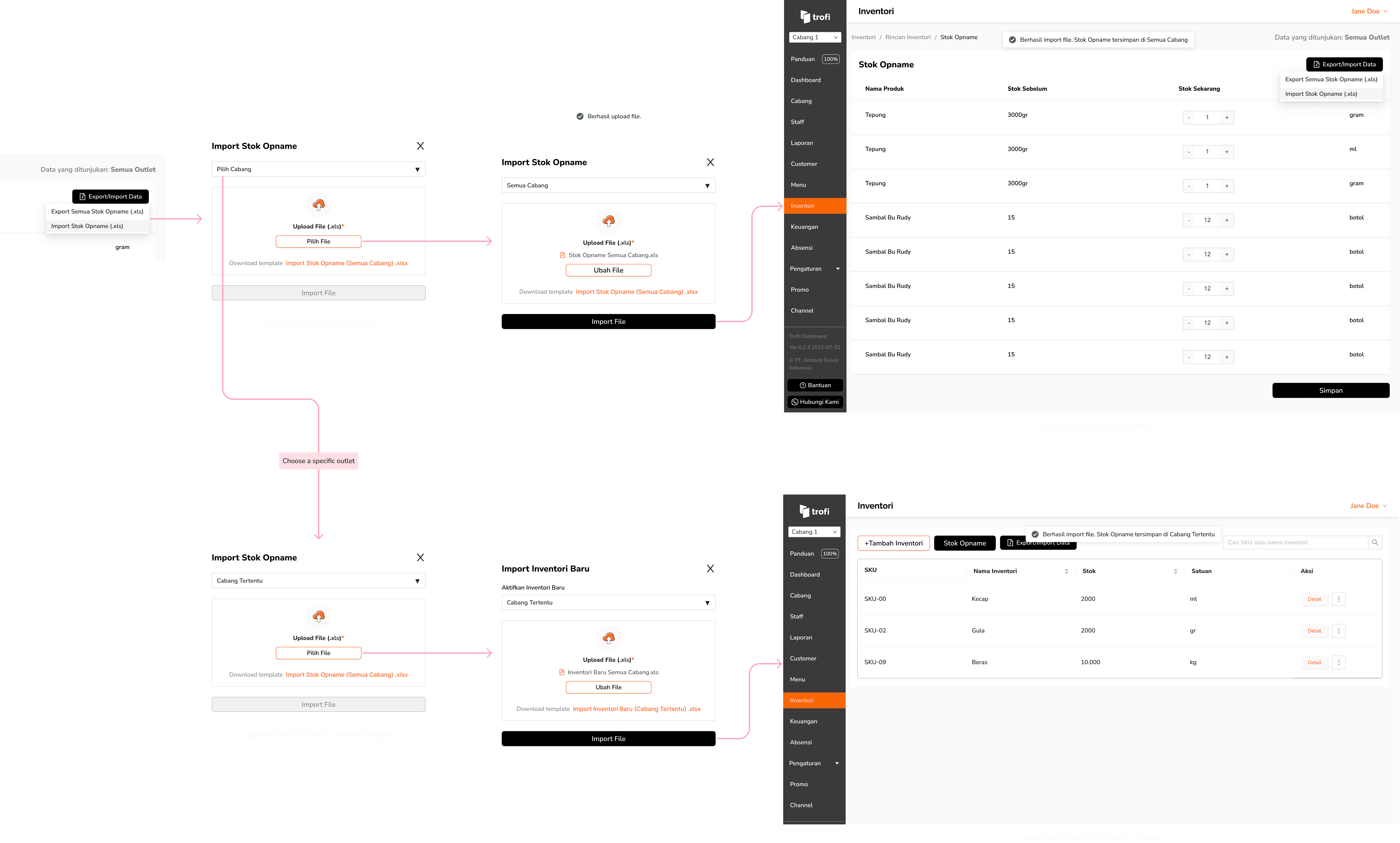 Over time, the inventory flow went through several small but meaningful adjustments. Early feedback showed that some steps felt repetitive when switching between outlets, so we refined the flow to make it easier to handle each outlet’s data.