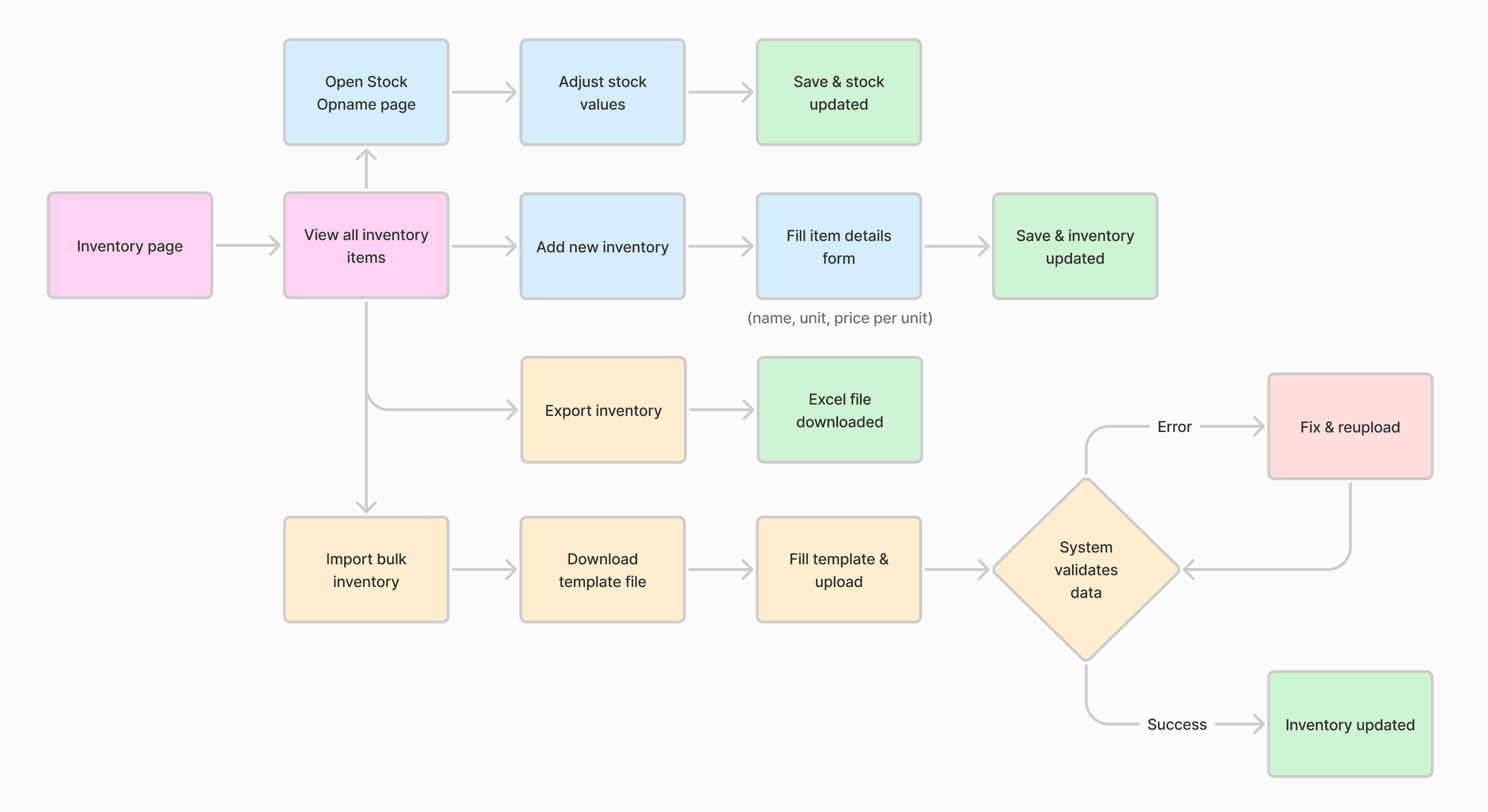 The design process focused on mapping how inventory was checked, updated, and cross-referenced. Then reshaping those steps into a flow that felt natural, predictable, and easy to trust.