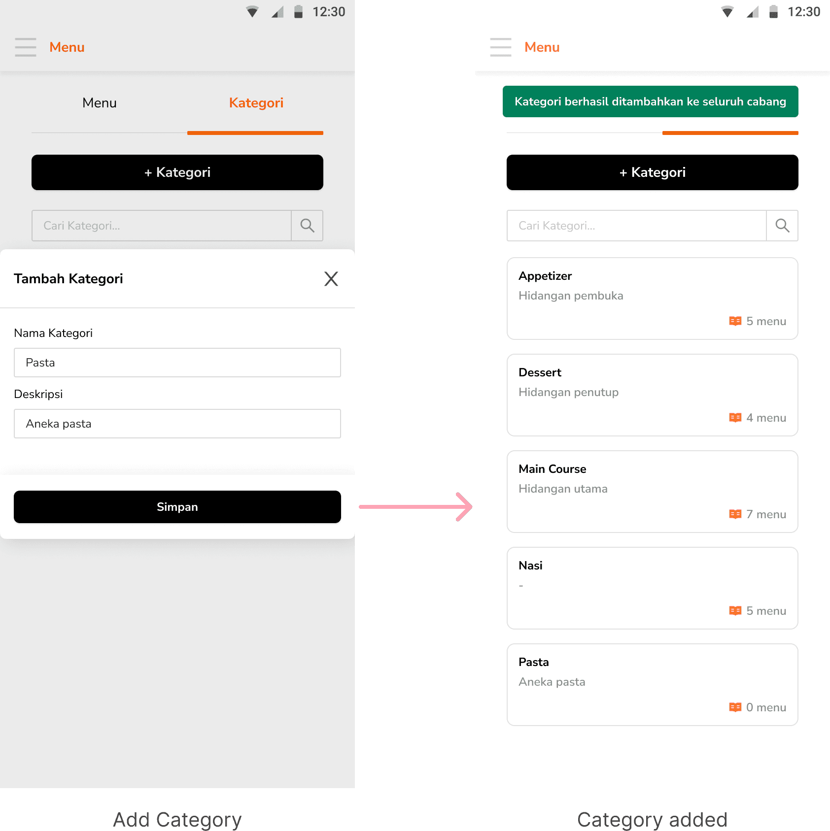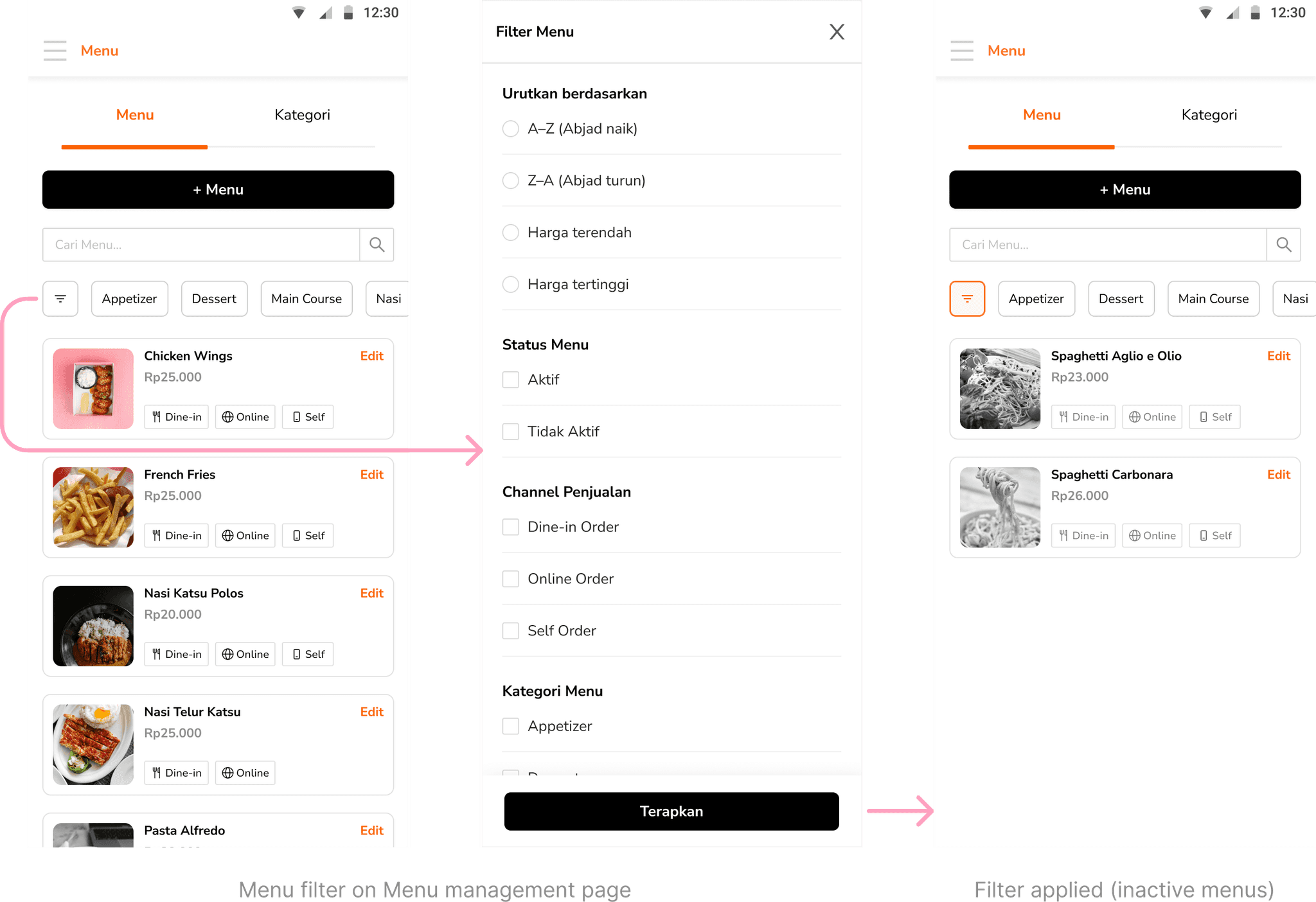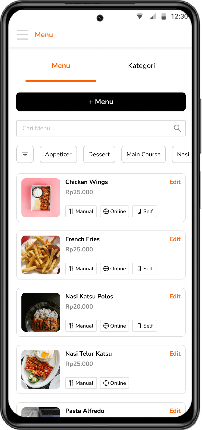 Assigning categories to menu items also enables filters in other pages like order selection and menu management. Once categories are set, they automatically appear as filter options, allowing users to sort and view menus by type more efficiently.